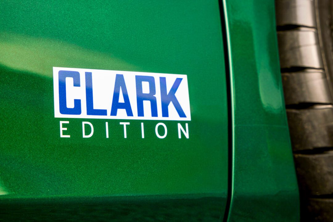 From the machined aluminium fuel cap with a blue-anodised centre to the yellow exhaust tips and hand-painted pinstripes, every detail evokes a memory. Clark Edition logos on the doors and a numbered carbon fibre treadplate (1 of 60) make each car a unique artifact.