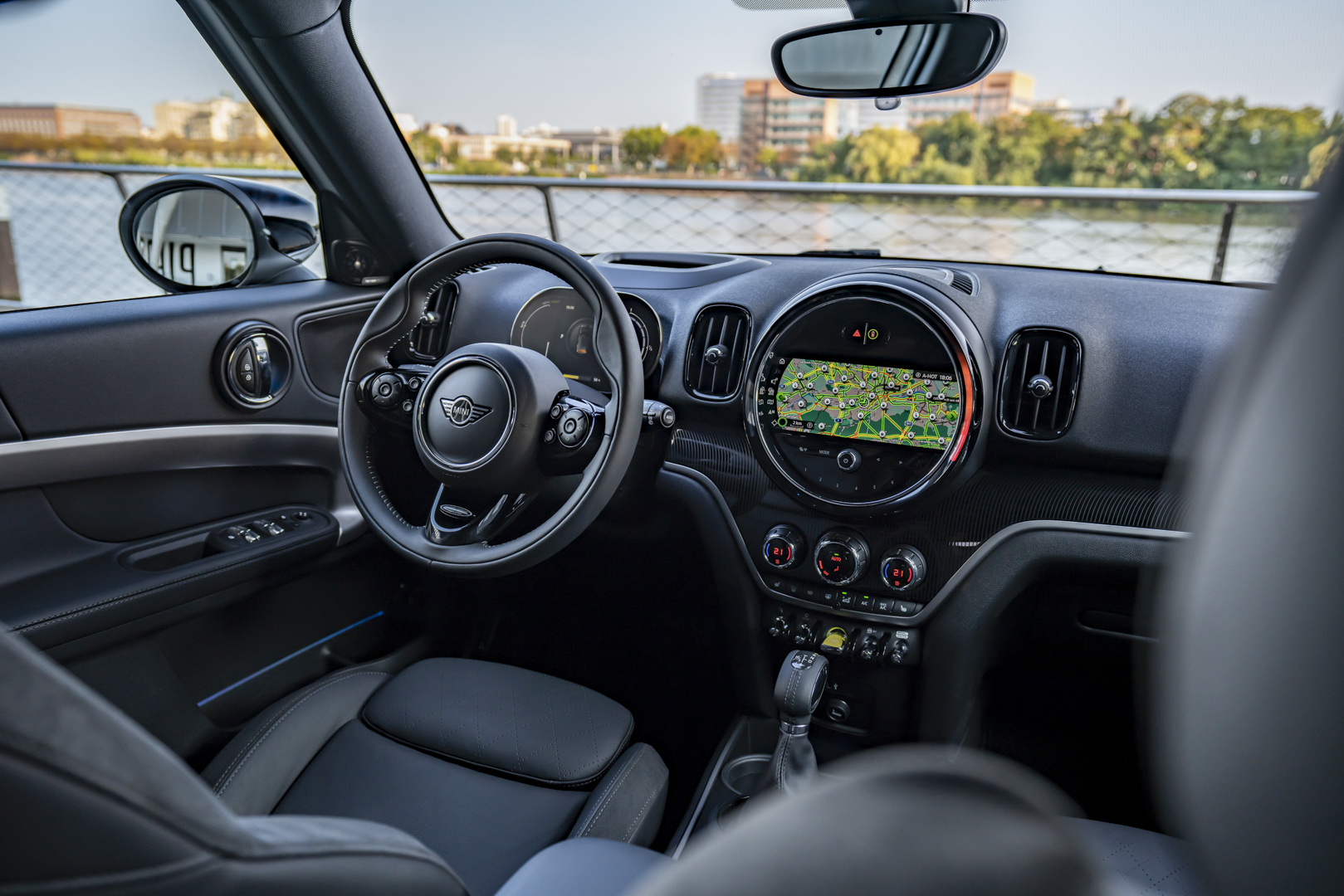 In city traffic, the MINI Cooper SE Countryman ALL4 can be driven purely electrically. On the drive through the canyons of office towers, to which the city owes its nickname “Mainhattan”, it thus becomes a pioneer for sustainable mobility. Almost the entire inner city area of Frankfurt is designated as an environmental zone. Thanks to the Euro 6d emissions standard, the MINI Cooper SE Countryman ALL4 is likely to start its combustion engine there, but in local emission-free driving mode it immediately sets an example for clean driving pleasure.