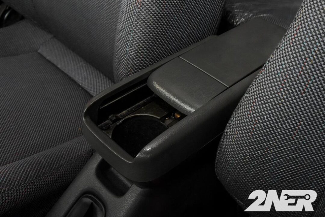 A rare JDM Mazda center armrest, a flex for the true Familia nerds who know just how hard that piece is to find.