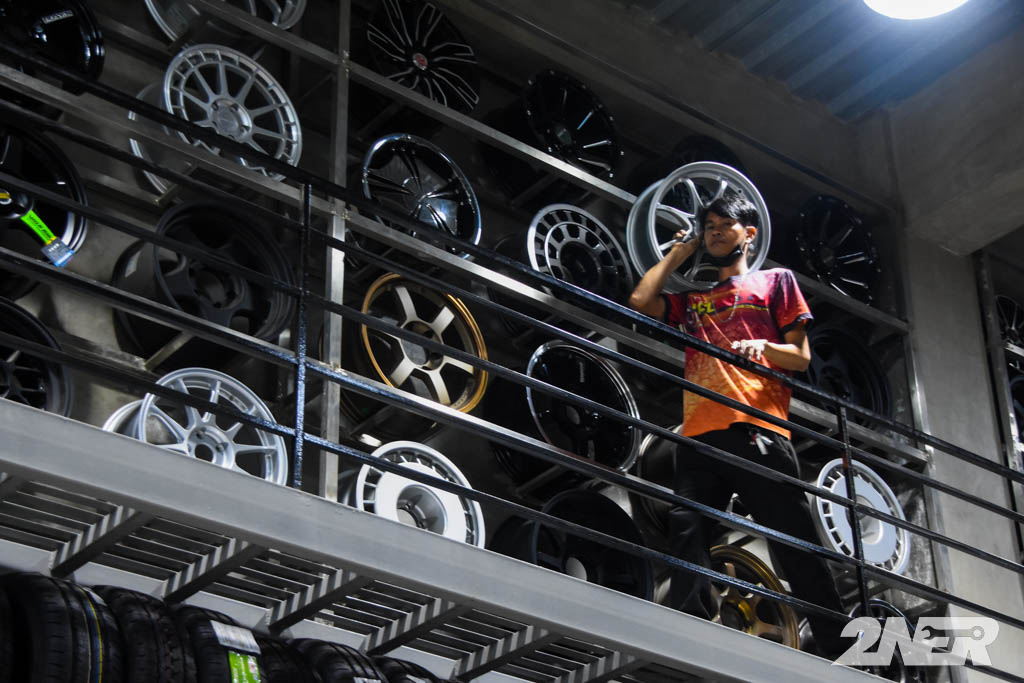 Now, the first thing that grabs your attention is a wall-to-wall wheel display upon entering the premises. With over 300 wheel design choices available to choose from, the huge display is only a sample of what they have to offer. The top most floor of the building is dedicated to storing all the different tire brands and models that they have on-hand, waiting to be mounted on wheels of the client’s choice.