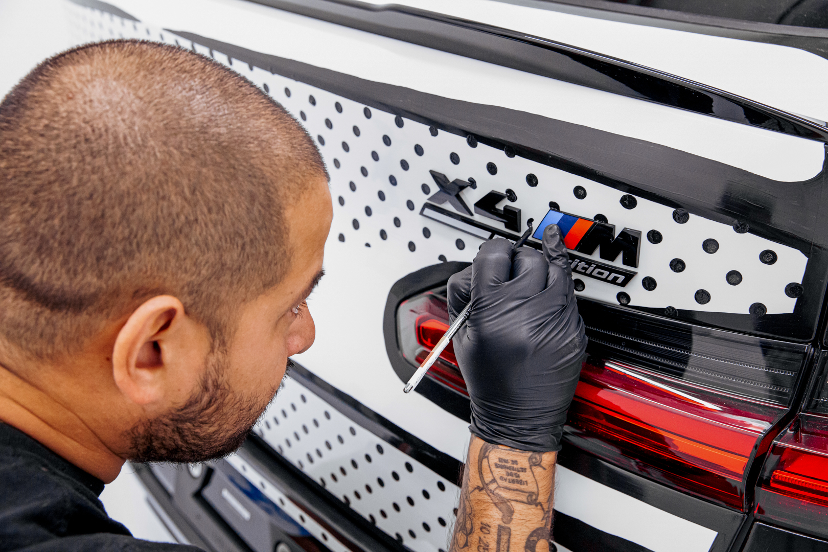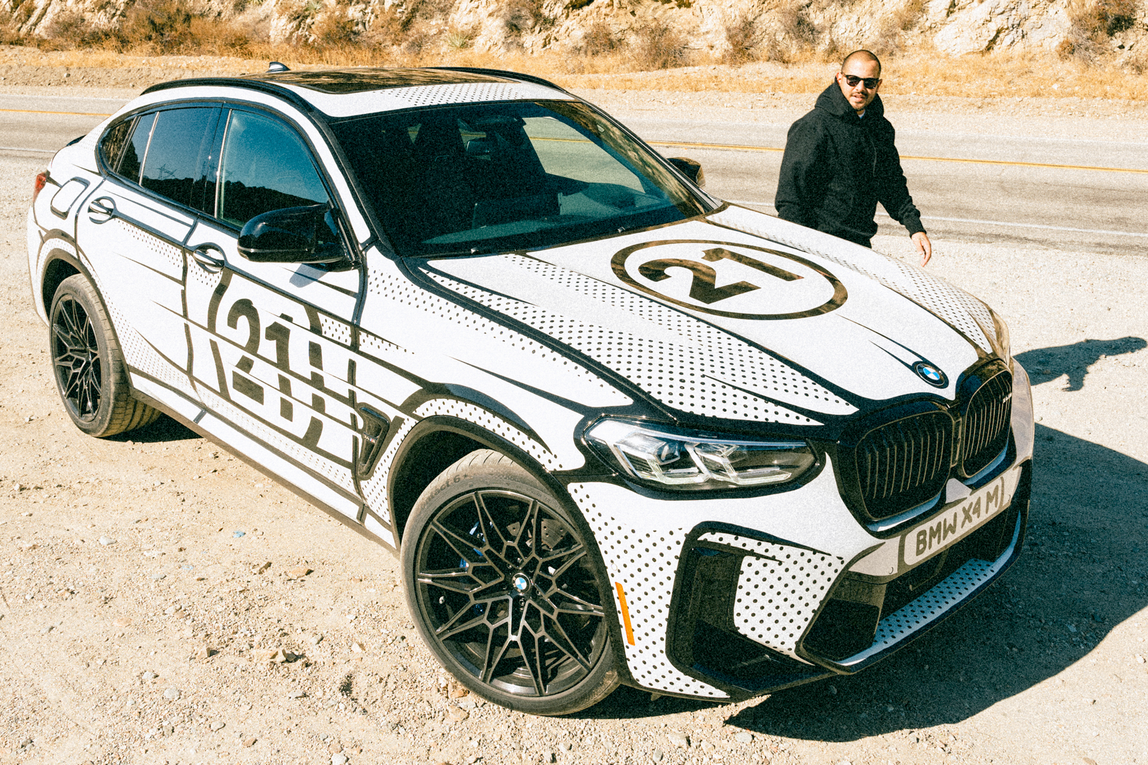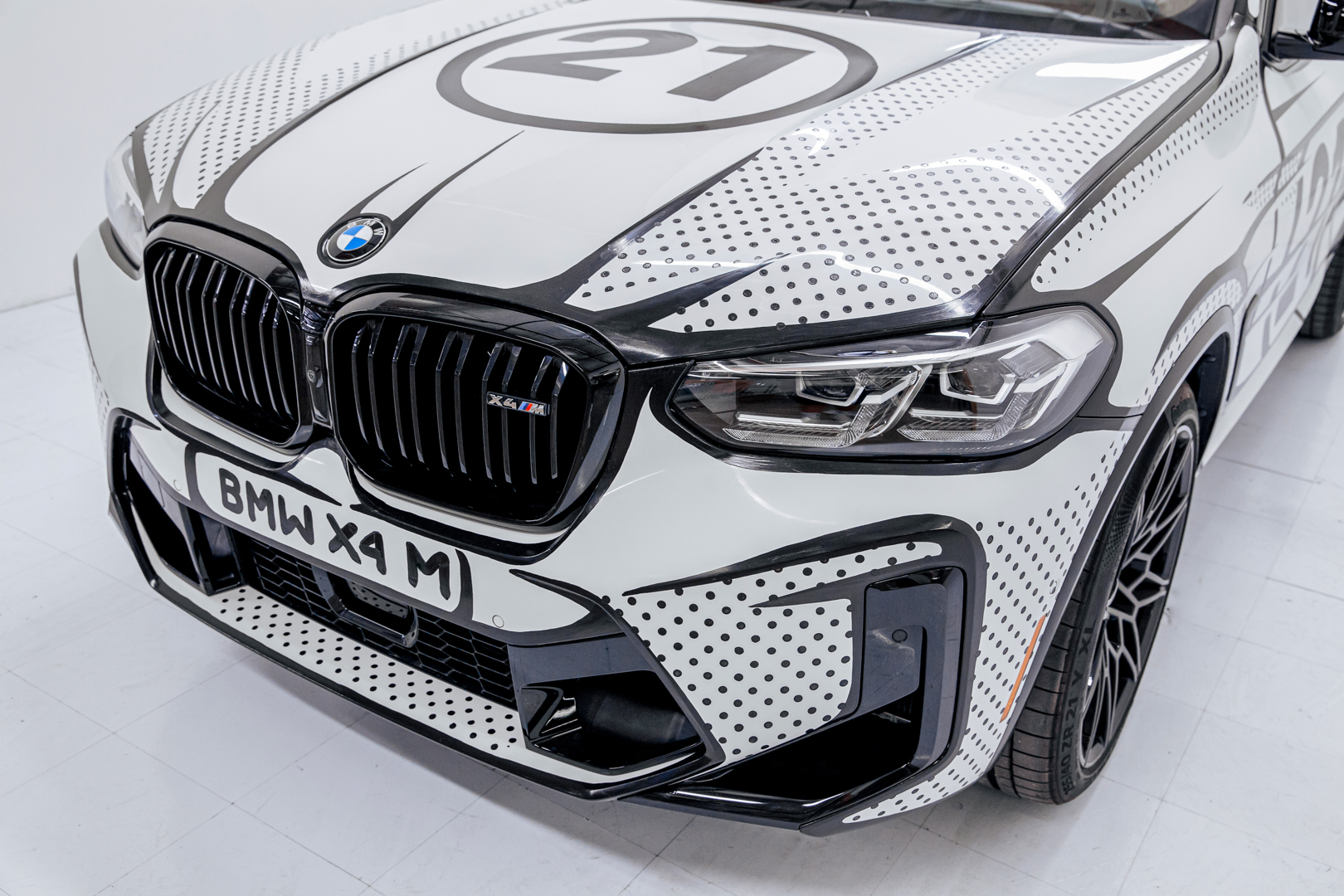 The global premiere of the BMW X4 M Competition x Joshua Vides took place at the exclusive showroom [SPACE] by BMW in The Grove in Los Angeles. This also hosted a merchandising collection dedicated to BMW and BMW M designed by Joshua Vides. He is selling a limited edition of the collection through his own channels this year. Pro-skateboarder Ishod Wair, who is also a great BMW M enthusiast, posed for the catalogue with the car. This collection also includes items of clothing such as t-shirts and hoodies, as well as everyday items like thermos cups, and even interior decoration products like carpets – all featuring logos in the style of Joshua Vides. On the evening before the official premiere, the artist had celebrated an exclusive sneak preview of the BMW X4 M Competition x Joshua Vides at [SPACE] by BMW with family and friends. The unique car was presented there to selected guests on 7th October as part of a preview with works by Joshua Vides. The vehicle will be available for viewing by the general public from 8th October, before it is transferred to the BMW M GmbH vehicle fleet in November.