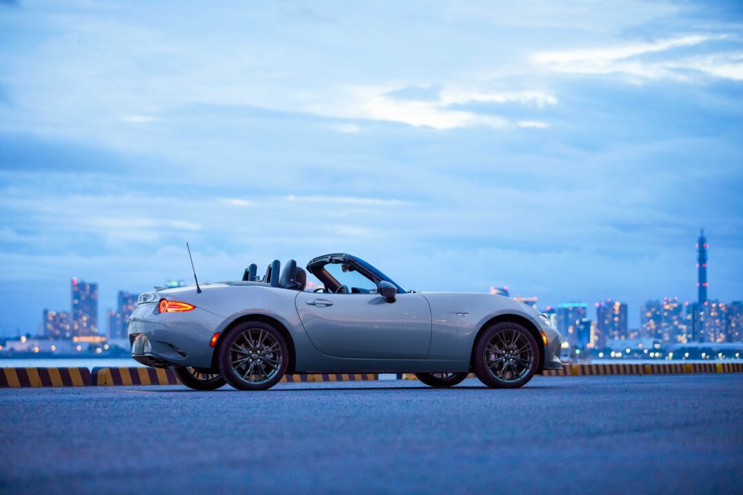 A total of seven MX-5 variants—five Soft Top and two RF—are available in 2024. It comes in seven colorways, including a new color, Aero Gray, along with Soul Red Crystal, Machine Gray, Snowflake White Pearl, Deep Crystal Blue, Zircon Sand, and Jet Black. All variants have full LED exterior lighting with a revised lighting signature for the headlights and taillights. The changes are capped off by new 17-inch Aluminum Alloy Wheels in a Diamond Cut or Black Metallic finish.