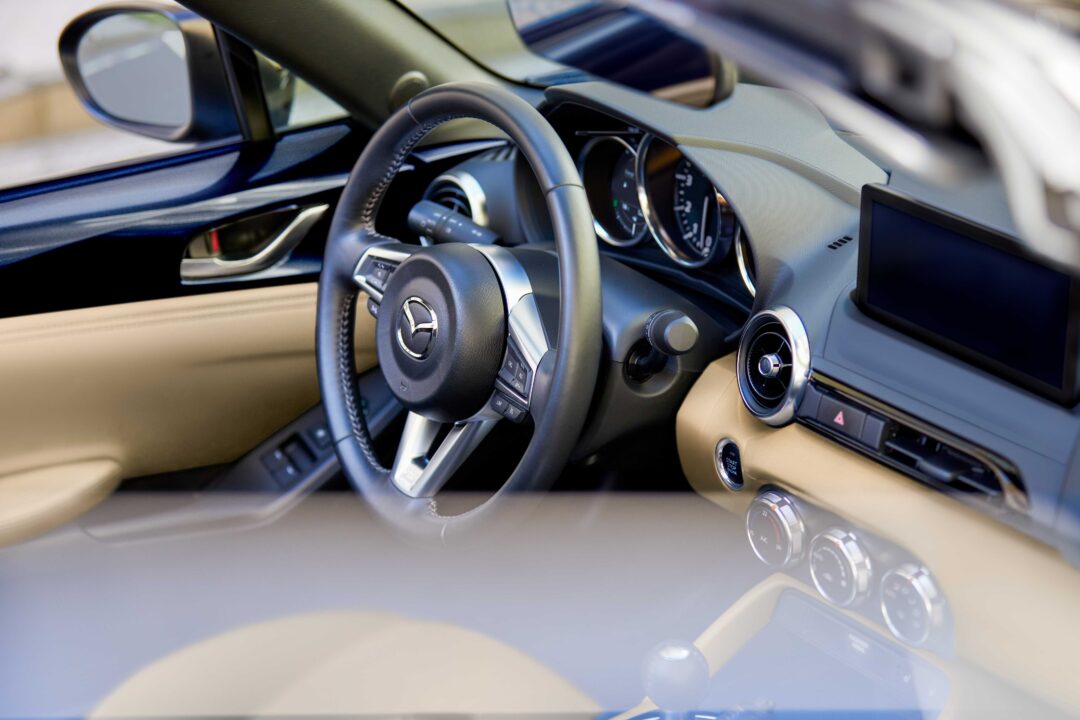 Despite being a genuine sports car, the MX-5 is a thoroughly modern and safe vehicle, attributable to Mazda’s i-ACTIVSENSE® safety and driver assist technology. For 2024, it adds six new functions: Smart Brake Support-Front (SBS-F), Smart Brake Support-Rear (SBS-R), Blind Spot Monitoring (BSM), Rear Cross Traffic Alert (RCTA) with Rear Cross Brake Support (RCBS), and Driver Attention Alert (DAA). Adaptive LED headlights (ALH), Lane Departure Warning (LDW), rear parking sensors, and a reverse camera remain standard.