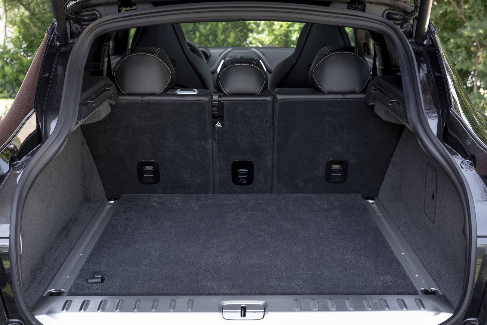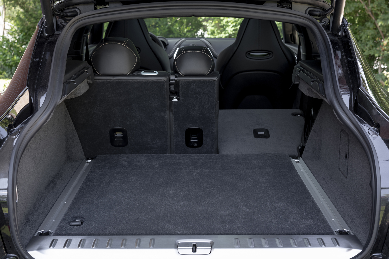 Aerodynamics were an important consideration within the design process and this included the novel experience for the team of running computational fluid dynamics (CFD) tests with a DBX towing a trailer with a DB6 on it. At the car’s front, the daytime running lights (DRLs) have an integrated aerodynamic duct, which channels air through the front wheel arches and along the side, helping to reduce both drag and lift while also cooling the brakes. Air flows cleanly over the roof, through the rear wing, over the rear window and on to the rear flip. This unique approach and design detail allows the rear screen to self-clear on the move. Aerodynamic design has also played a key part in passenger comfort because as one of only a few companies using computational aeroacoustics technology, Aston Martin’s engineers have been able to keep cabin noise to a minimum at speed.