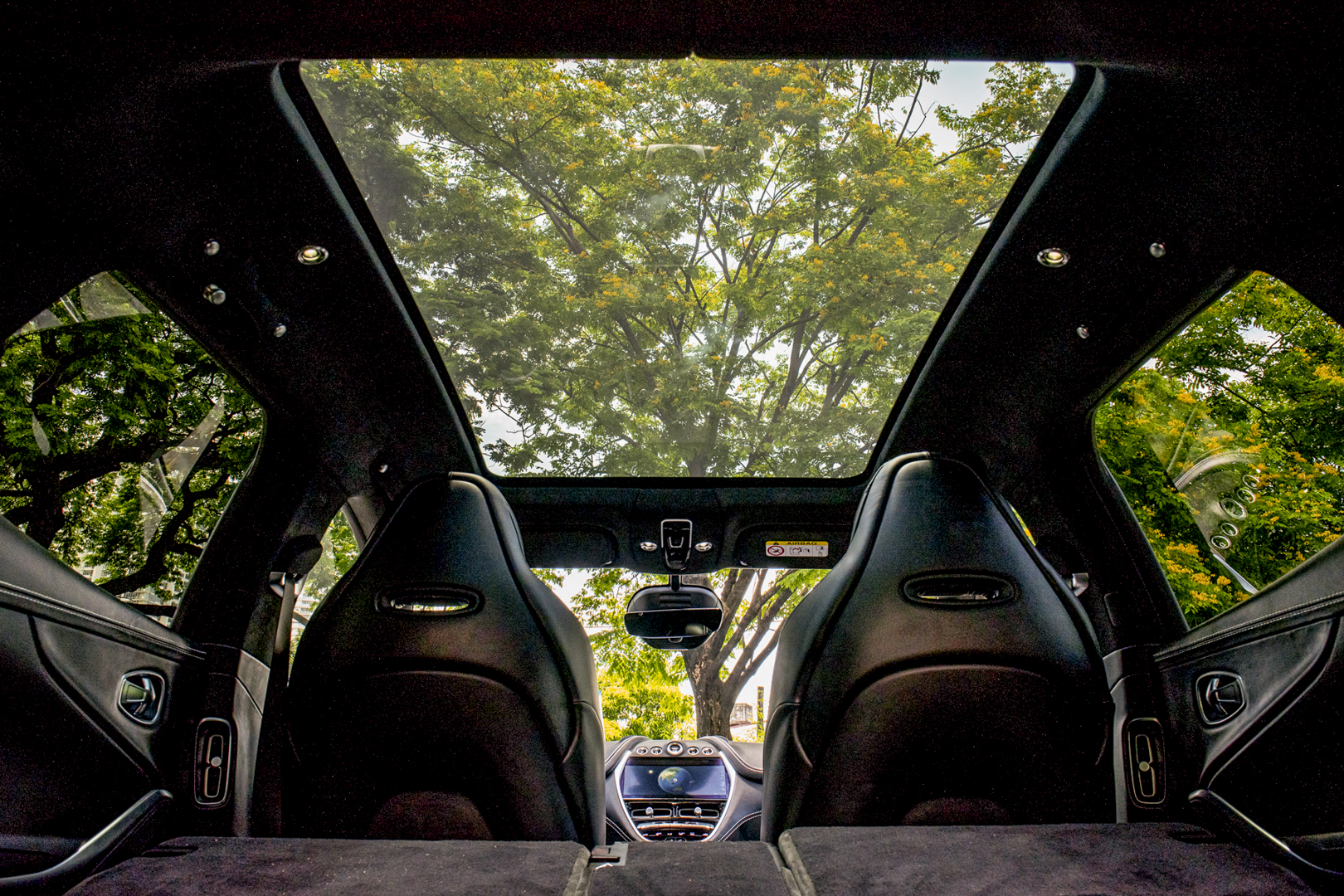The luxuriously handcrafted interior of DBX has been designed to provide equal space and comfort whether sitting in the front or rear of the car. Class-leading headroom and legroom combines with a full-length glass panoramic roof and frameless door glass to offer a fantastically light and spacious cabin environment. The use of sports car seat packaging in the front not only provides the driver with exceptional support and long distance driving comfort, but also provides knee and footwell clearance for those sitting behind.