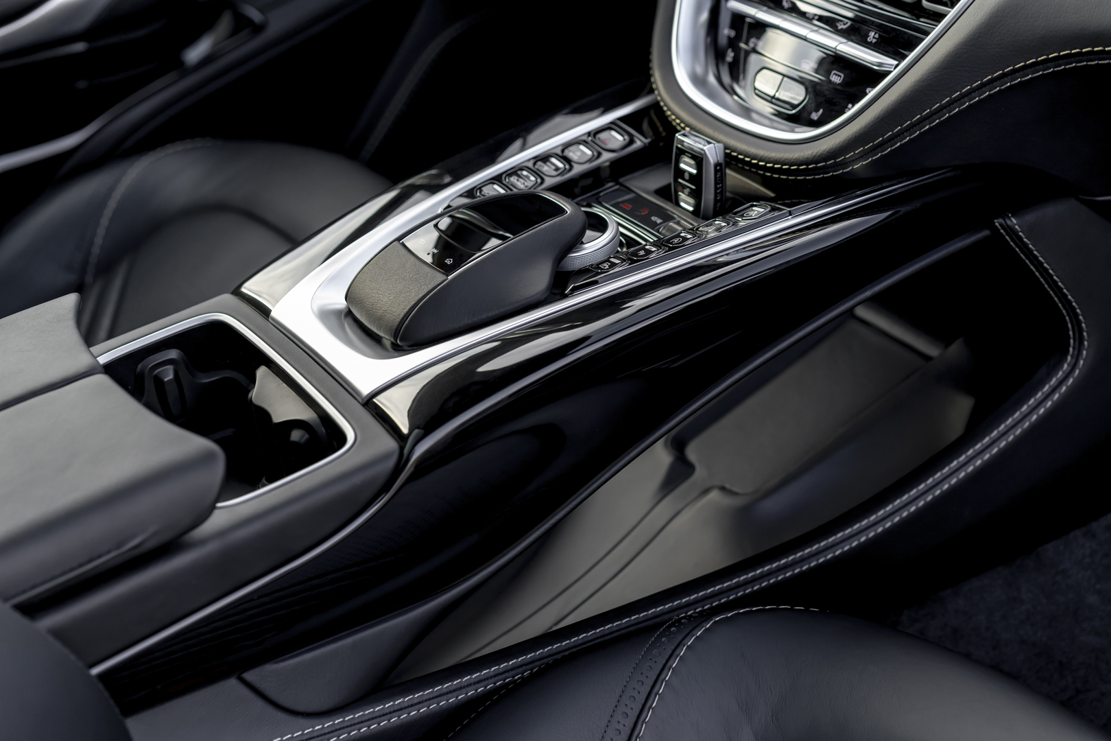 Another design highlight includes the elegantly crafted bridged centre console allowing for both flexible storage below, and a beautiful, architectural centrepiece. This feature keeps valuables close to hand while not occupying the passenger seat and away from dirt on the car’s floor mats. As part of ‘Q by Aston Martin’ – Aston Martin’s personalisation service – optional features of this centre console can be machined from a solid piece of wood, such as Walnut, for added tactility.