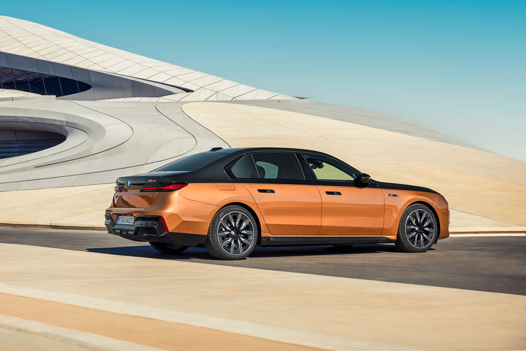 BMW M is introducing an all-electric performance model to spearhead the new BMW 7 Series range. The BMW i7 M70 xDrive (electric power consumption combined: 23.8 – 20.8 kWh/100 km in the WLTP cycle) is the most powerful model with an all-electric drive system in the overall BMW Group portfolio. Equipped with an electric motor at both the front and rear axle generating a maximum system output of 485 kW/660 hp* and an M-specific chassis, the new BMW i7 M70 xDrive delivers the perfect combination of electric mobility and performance, resulting in a driving experience unique in the luxury segment. The range-topping model of the new BMW 7 Series line-up accelerates from 0 to 100 km/h (62 mph) in 3.7 seconds, making it the fastest all-electric BMW model. Top speed is electronically limited to 250 km/h (155 mph).