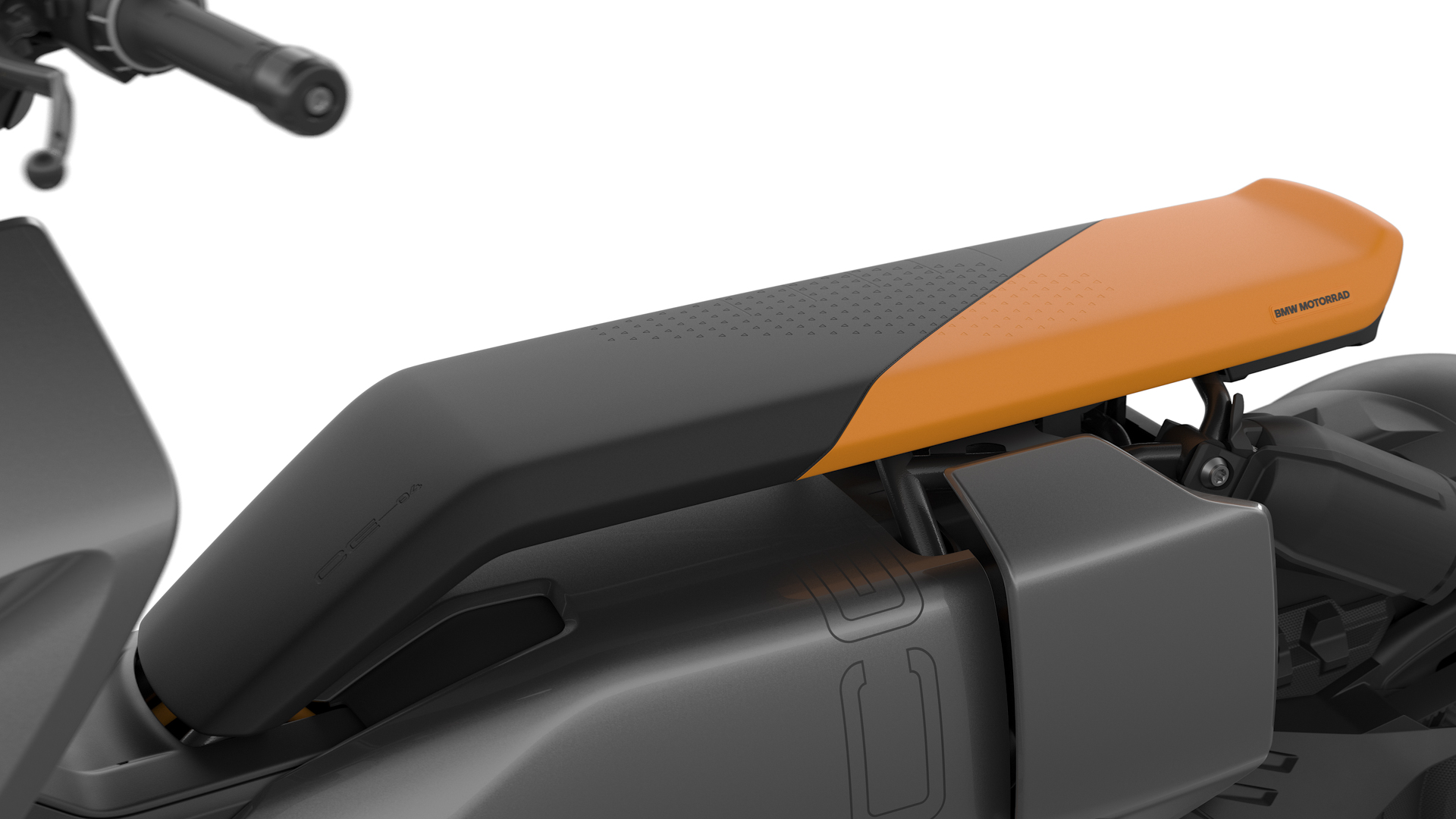 In addition, there are trend-setting wheels (solid wheels) featuring a disc-wheel look and a side stand that is integrated in the design styling. The new BMW CE 04 in Avantgarde Style (ex works option) is a striking, colourful statement of contemporary urban mobility. In this style, the colour Magellan Grey metallic is supplemented with a black/orange seat, an orange wind deflector and various graphics.
