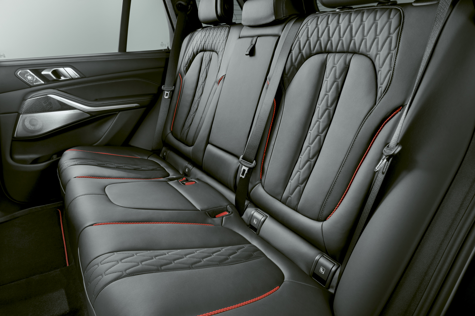 In the interior of the BMW X5 and BMW X6 Black Vermilion editions the M Alcantara Anthracite roof liner provides for an exceptionally sophisticated ambience. A finely crafted Edition logo on the cupholder cover in BMW Individual black piano finish emphasises the limited model’s exclusiveness. The glass application Crafted Clarity on the iDrive Controller, the automatic gear selector and Start/Stop button, as well as the BMW Individual precious wood interior trim Fineline Black with aluminium inlays provide additional sophisticated accents. Driver and front seat passenger travel in comfort seats offering a multitude of adjustment options. The BMW Individual full leather trim Merino Black is additionally enhanced by edition-specific red contrast stitching for both the driver’s seat and front passenger seat. Inside the BMW X5 Black Vermilion, the red accents are also to be found on the rear seats. Likewise, the edging on both the front and rear floor mats is finished in red. Sun-protective glass with more deeply tinted rear windows beyond the B-pillar enhances passenger privacy whilst blending in harmoniously with the sporty and dynamic exterior design.