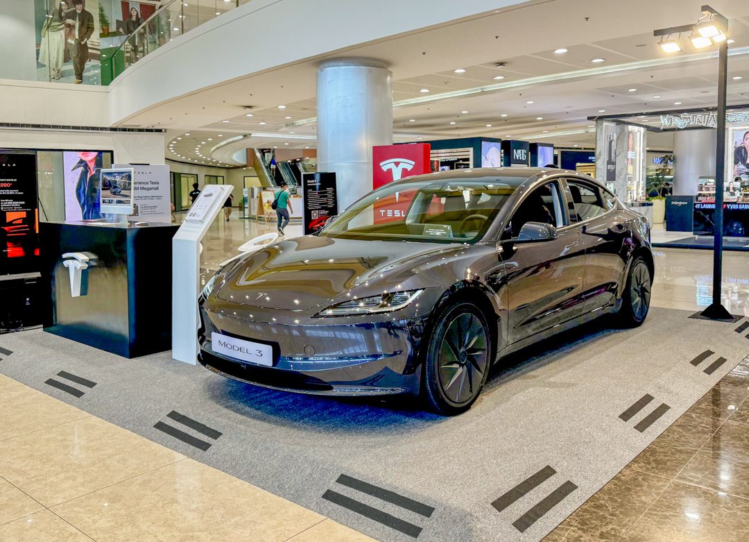 Also showcased at the Megamall pop‑up is the latest Tesla Model Y, now upgraded with a premium black headliner and a larger 16‑inch touchscreen display, offering even more comfort and immersion.