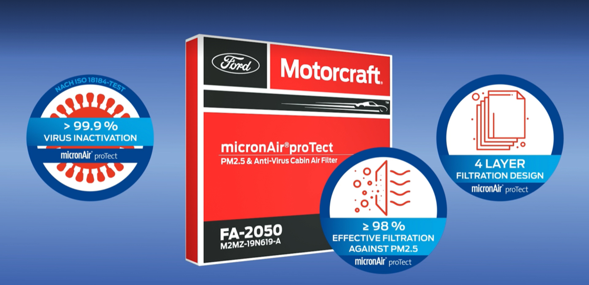 Meanwhile, the Motorcraft micronAir proTect Cabin Filter, a premium cabin filter that offers superior filtering functionality at a competitive price point, is also available to Ford Ranger and Everest models (model year 2015 onwards) as an upgrade to the standard cabin filter. The micronAir filter is effective against nearly 100% of allergens of 2 microns size or larger, and against small micro-organisms such as bacteria and fungal spores.