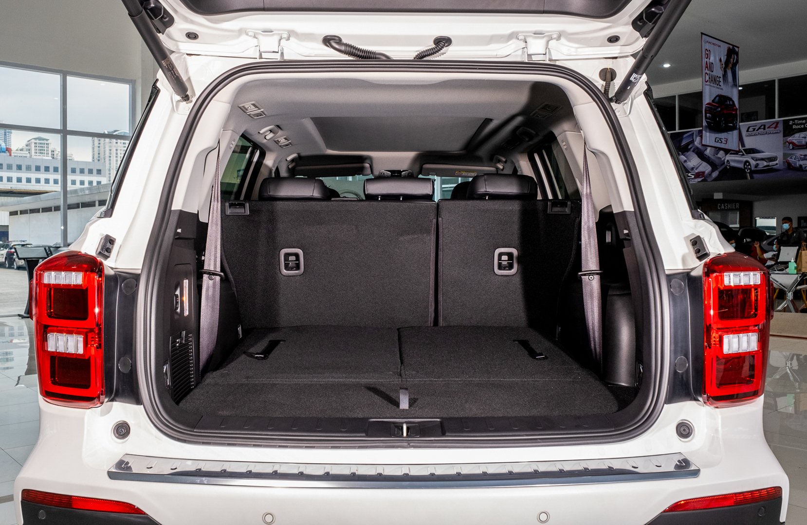 Apart from that, the refreshed GS8 also has 10 cup holders, LED ambient lights, a panoramic sunroof, and an ion-filtered air conditioning system. The third-row seats can be folded flat so you may place all your cargoes conveniently. The third row also has hook holders that you may use to secure all your luggage.