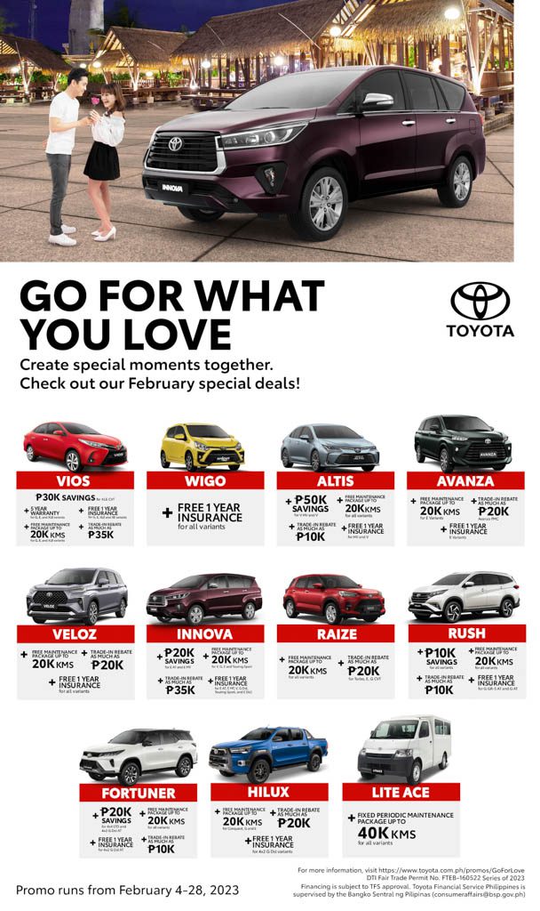 Create special moments this February with Toyota! Whether it’s spending quality time with a loved one or doing some much-needed self-loving, go all out! Promo runs from February 4-28, 2023 only.