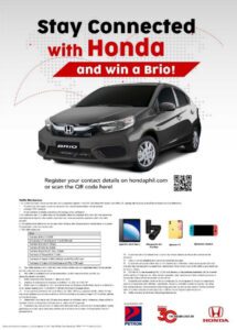 In addition, Honda car owners who have successfully registered online will get an additional e-raffle entry should they bring in their vehicle for preventive maintenance, aside from registering and providing their contact information during the e-raffle duration to end until March 18, 2021. The additional e-raffle coupon will be sent via email. The e-raffle draw is scheduled on March 23, 2021 and will be done via an electronic raffle draw system with the virtual presence of a DTI representative. Winning customers will be notified by HCPI through registered email or by a phone call and will be announced through HCPI’s official website and Facebook page.