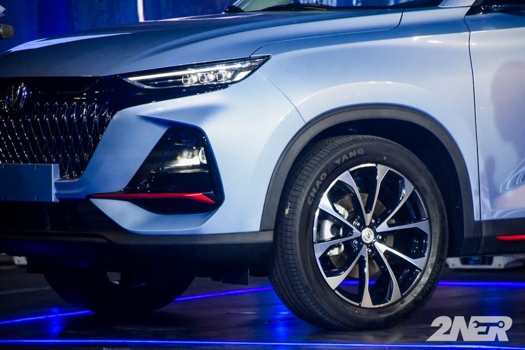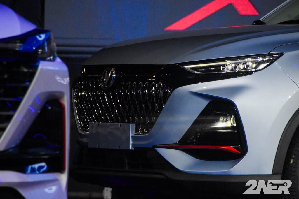Upfront, it features a dynamic, jewel-like grille pattern that represents movement and symphony, combining elegance with confident imaging. This is proportionate to the narrow multi-tier LED headlamp set-up that is a signature of Changan, supported by the matrix LED daytime running lights. Its structured frame is softened by graceful curves that form a stylish silhouette from front to rear, ending at a continuous strip with the infinity LED tail lamps. Sporty details include red accents to break the single-tone colorway, a shark fin antenna, a chrome-plated ornamental exhaust tip, and 19-inch air turbine alloy wheels.