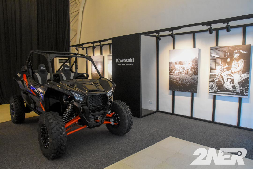 Even before guests entered the main hall, the experience began in the lobby and receiving area, where Kawasaki ATVs were displayed alongside photographic artworks.
