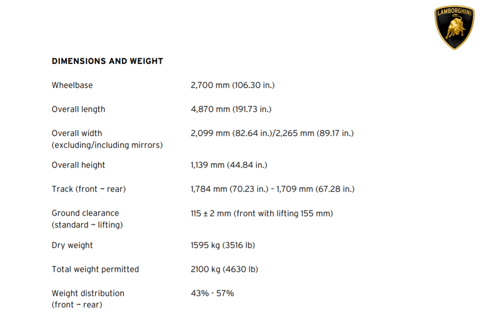 Technical Data – Lamborghini Countach LPI 800-4
