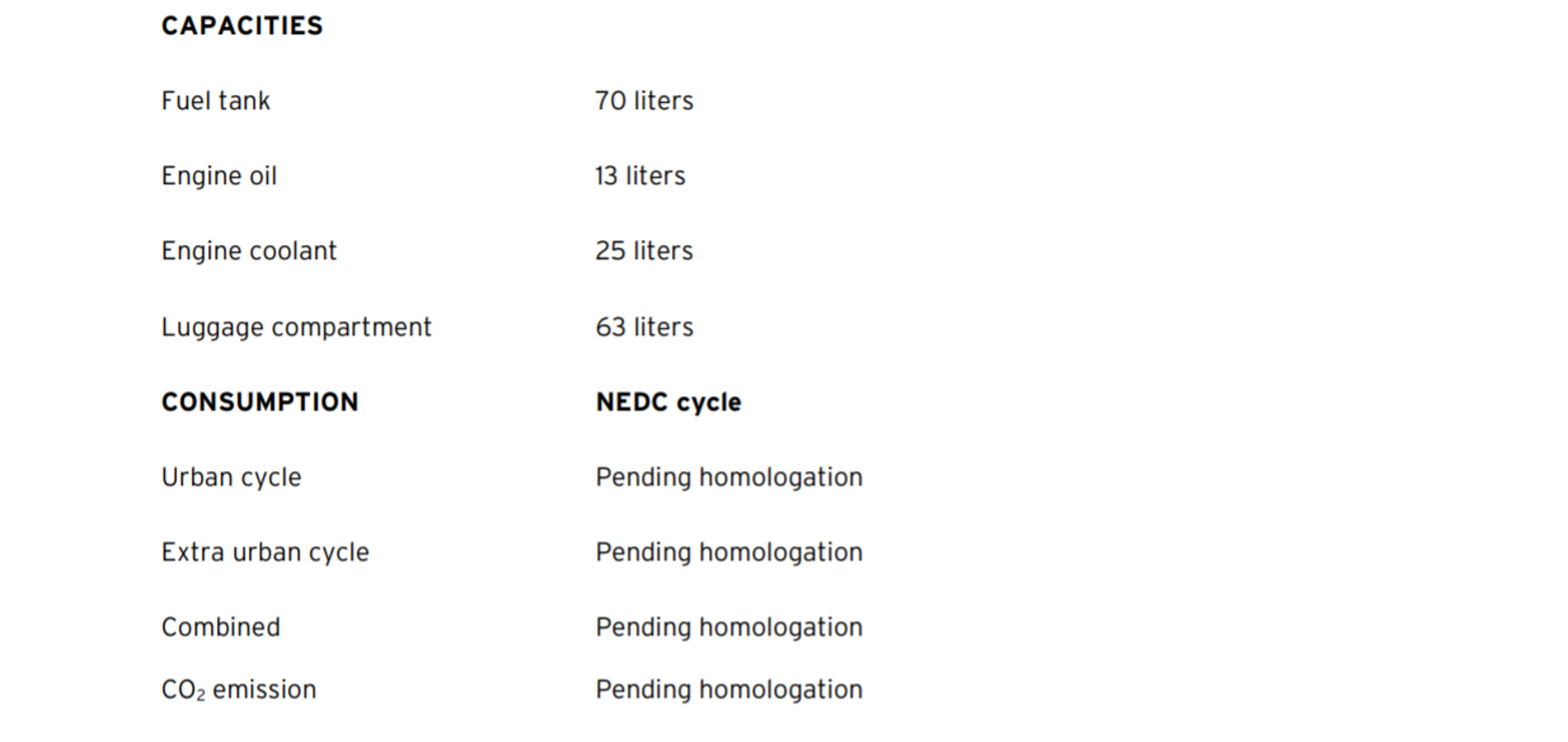 Body Full exterior body and interior trims (rear panels, door panels, tunnel, luggage compartment) in carbon fiber Suspension type Push rod magnetorheological active front and rear suspension with horizontal dampers and springs