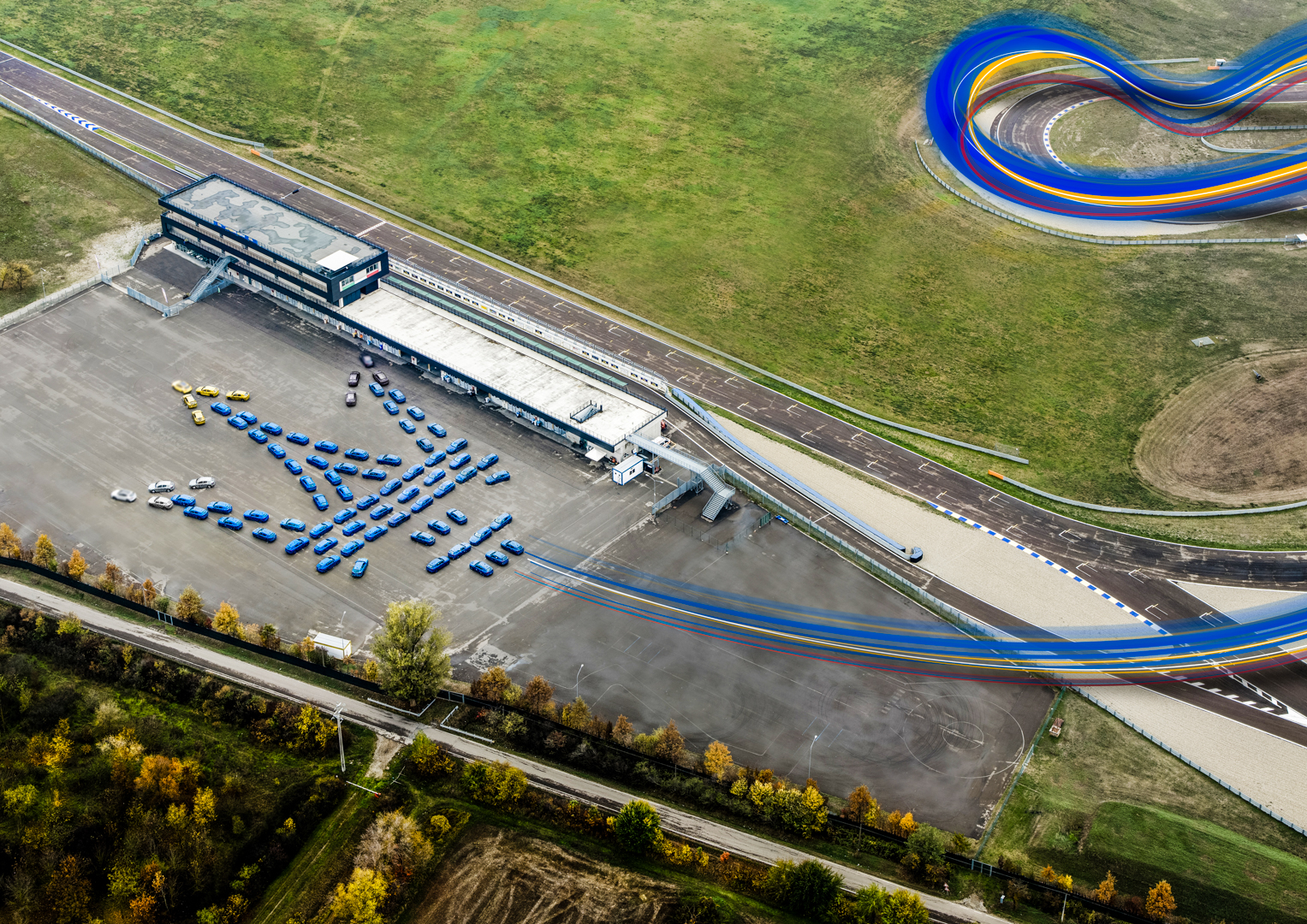 The Grecale prototypes formed a huge Trident, which took shape in a record-breaking shot. The outline was over 100 metres long and was made up of 80 cars.