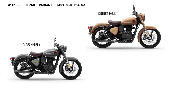 The Classic Signal series, available in Marsh Grey and Desert Sand, continues to celebrate Royal Enfield’s association with the armed forces.