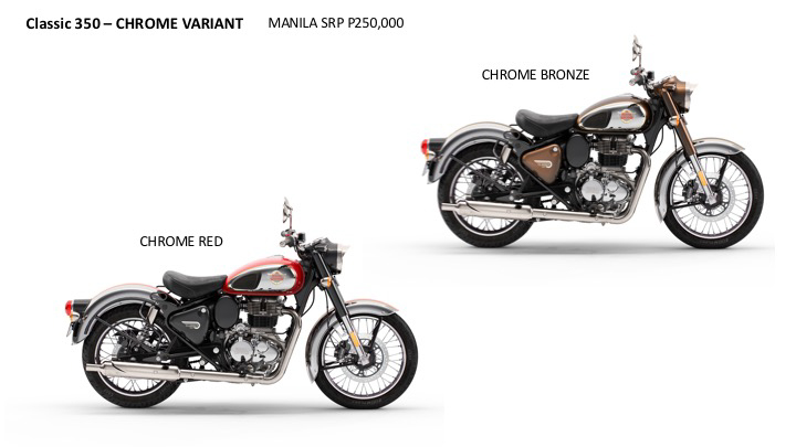 Available in dual-tone colour tanks in two colourways – Chrome Red and Chrome Bronze – the Chrome series bears true insignia of its past with striking tank badges that were adorned by the Royal Enfields of the 1950’s. Starting at PHP 250,000.