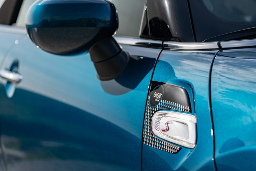 The 17 inch light-alloy Scissor Spoke 2-tone wheels of the MINI Convertible Sidewalk Edition are also a model-specific design feature. A further contribution to the model’s unmistakable appearance is made by the side indicator bezels, known as side scuttles, which bear the “Sidewalk” model designation.