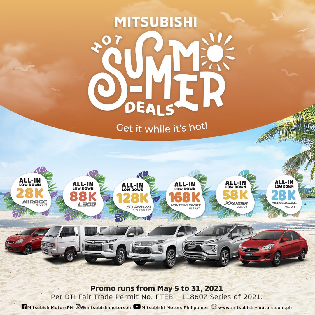 As the summer season continues to sizzle, Mitsubishi Motors Philippines Corporation (MMPC) extends its hot promo deals for the Mirage, Mirage G4, Xpander, Montero and Strada. Plus a low down payment offer for the Mitsubishi L300.