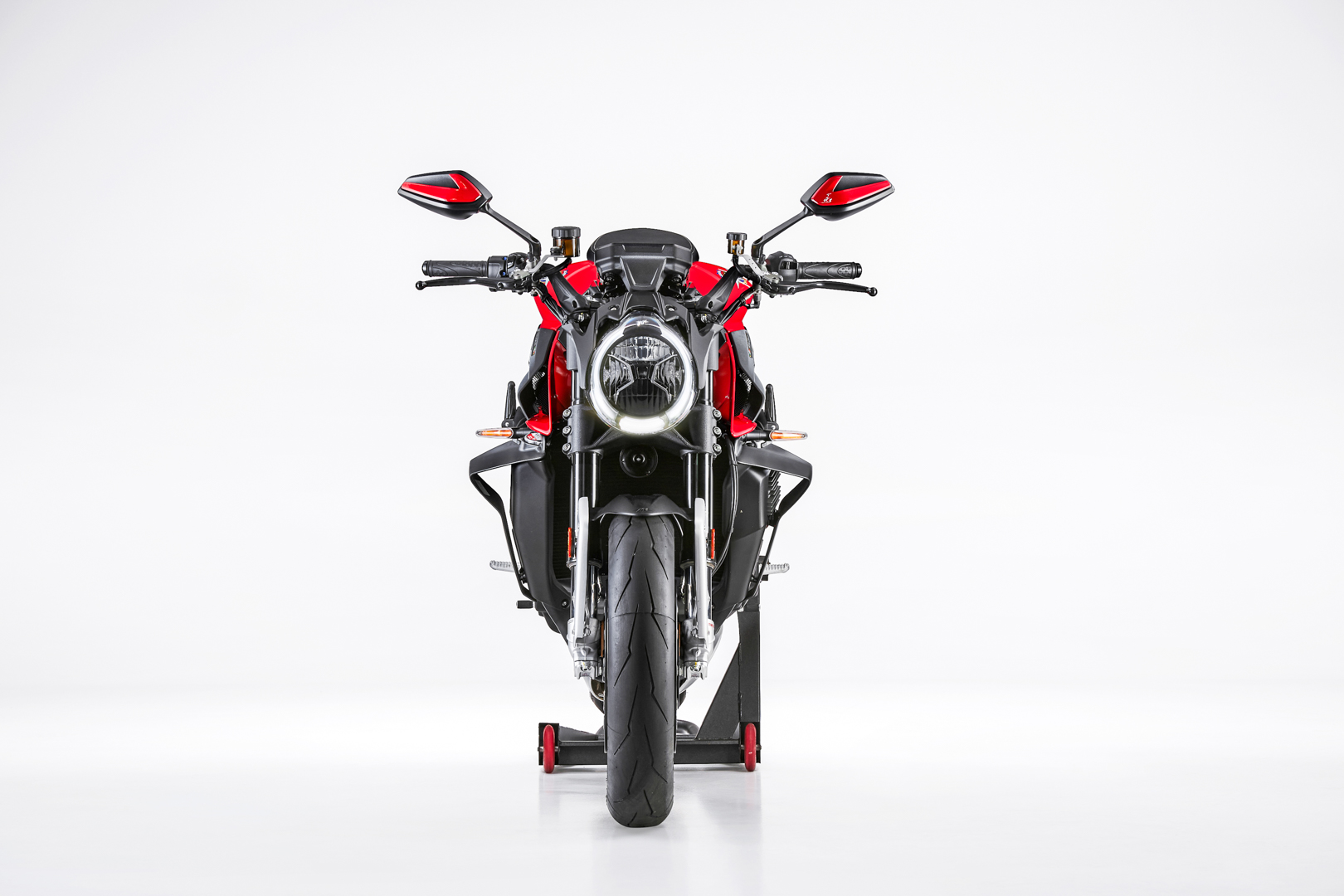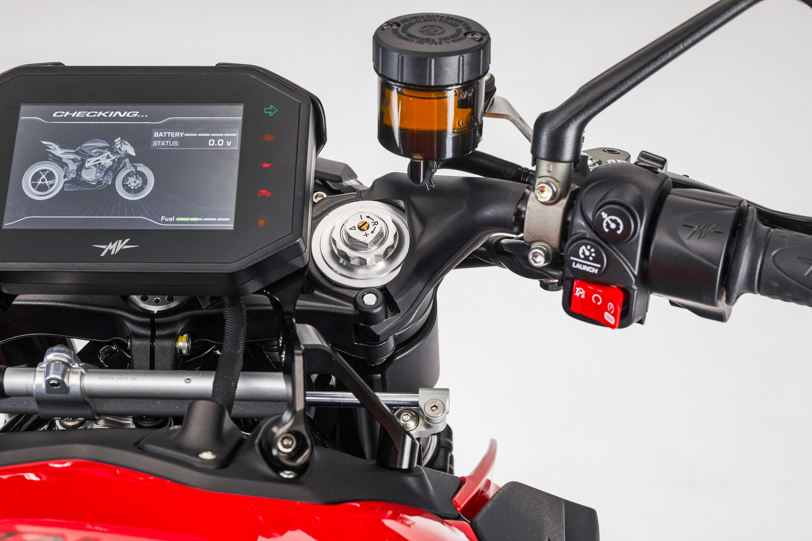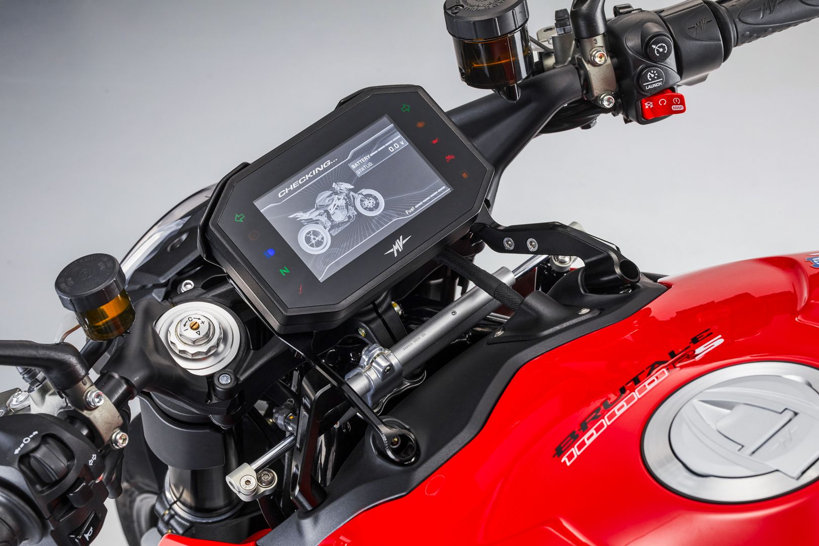 This means an extremely precise and effective management of all controls. Thanks to this platform, the FLC (Front Lift Control) traction and wheelie controls protect the safety of the rider, while the system remains “performance-oriented”, offering maximum acceleration in the specific conditions of use. The FLC, in particular, takes the wheelie under control instead of entirely preventing it, with the added benefit to improve performance and riding pleasure. The new cornering ABS uses the MK100 Continental system, ensuring the best braking control even when cornering, and preventing low side crash. The 5.5” TFT panel, extremely complete and able to communicate with the MV Ride App, allows to set all the bike parameters directly from the smartphone; it also offers many exclusive features, such as the recording and sharing of route itinerary. Thanks to the mirroring function, it is possible to use the RS instrumentation with turn-by-turn navigation. Each function is easily accessible through the joystick positioned on the left block. Moreover, the TPMS tyre pressure monitoring sensor is available as an option.