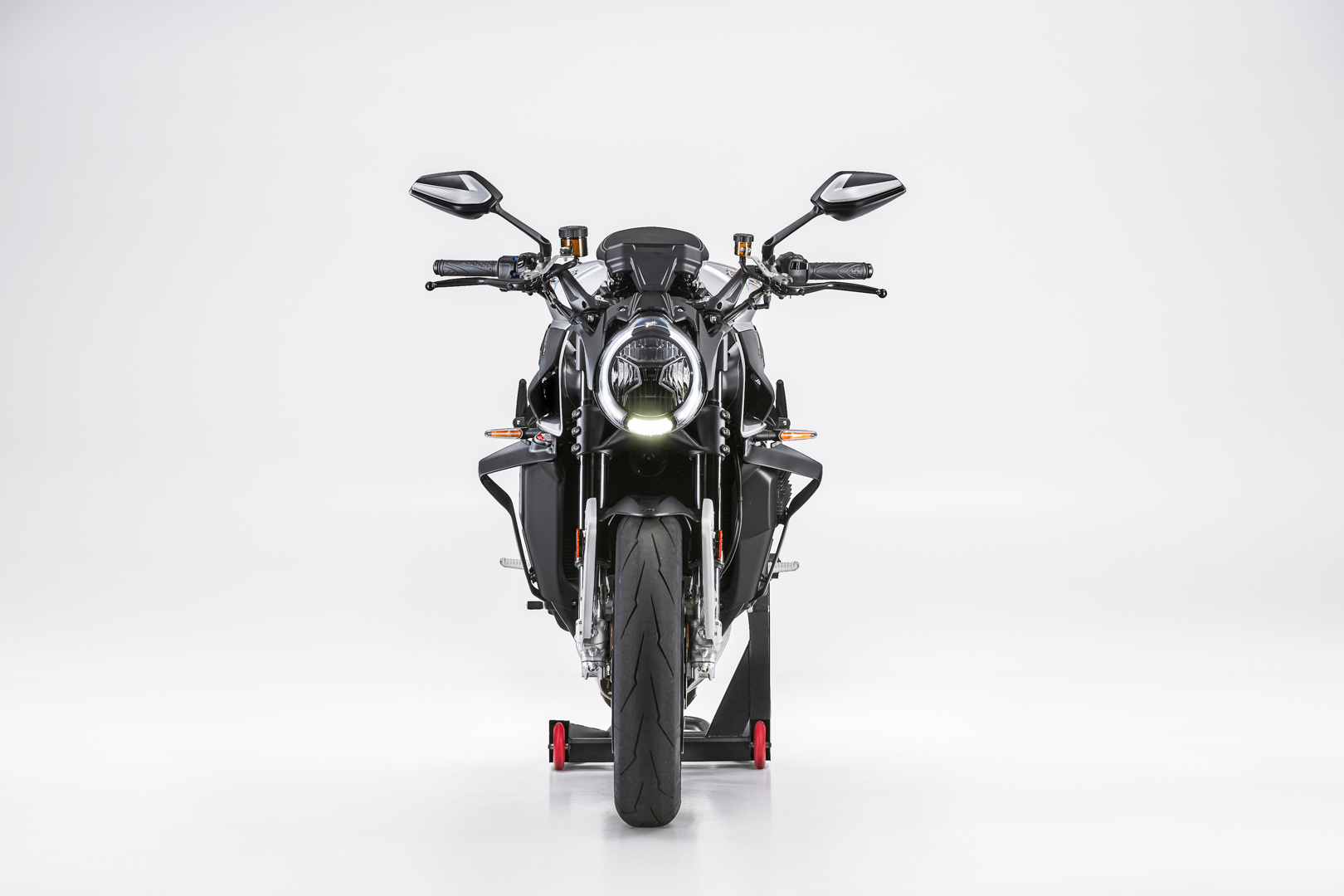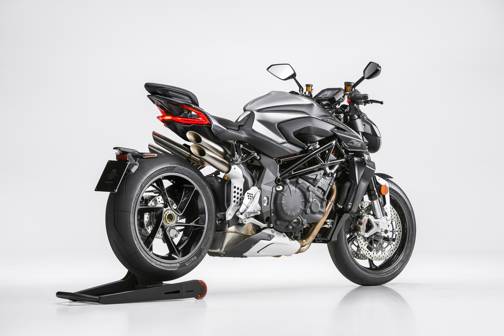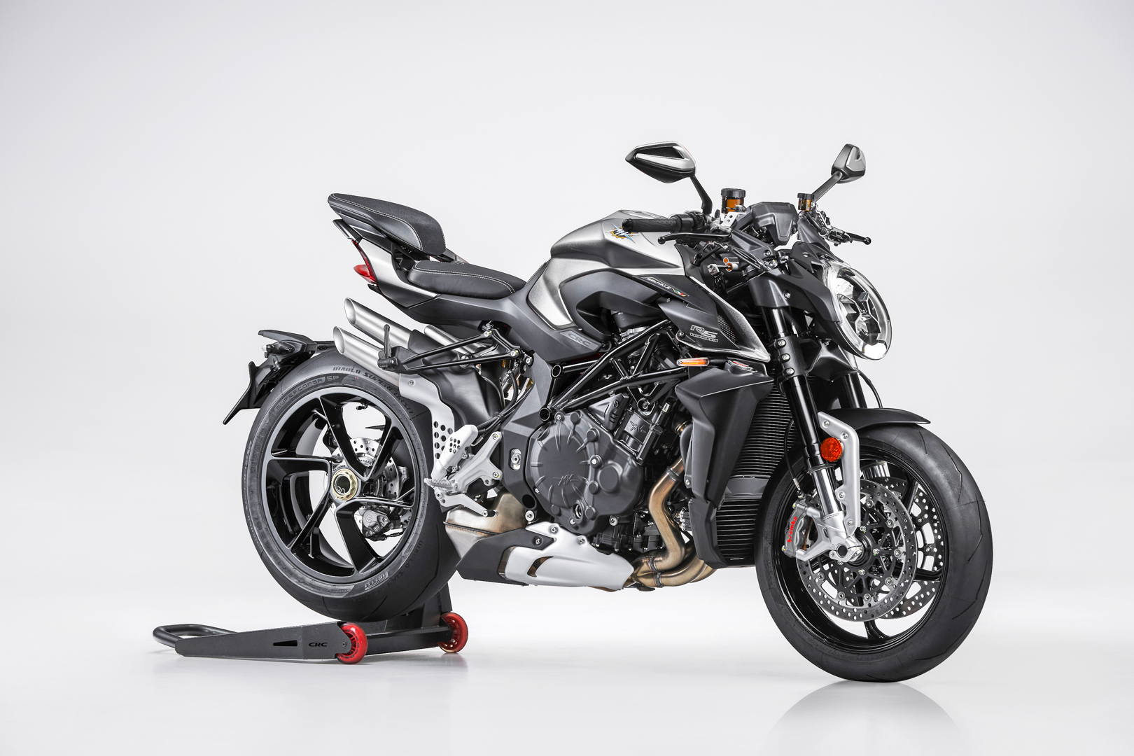 This means an extremely precise and effective management of all controls. Thanks to this platform, the FLC (Front Lift Control) traction and wheelie controls protect the safety of the rider, while the system remains “performance-oriented”, offering maximum acceleration in the specific conditions of use. The FLC, in particular, takes the wheelie under control instead of entirely preventing it, with the added benefit to improve performance and riding pleasure. The new cornering ABS uses the MK100 Continental system, ensuring the best braking control even when cornering, and preventing low side crash. The 5.5” TFT panel, extremely complete and able to communicate with the MV Ride App, allows to set all the bike parameters directly from the smartphone; it also offers many exclusive features, such as the recording and sharing of route itinerary. Thanks to the mirroring function, it is possible to use the RS instrumentation with turn-by-turn navigation. Each function is easily accessible through the joystick positioned on the left block. Moreover, the TPMS tyre pressure monitoring sensor is available as an option.