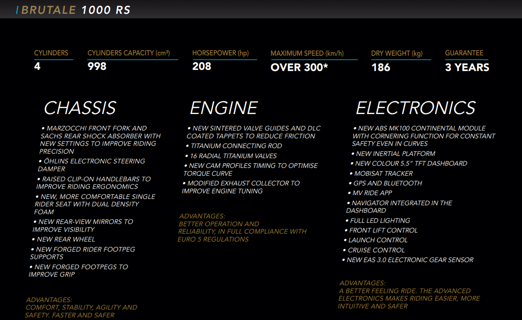 State-of-the-art electronics of the new Brutale 1000 RS is the fruit of a relentless development activity. The new IMU detects the motorcycle position in space and in real time, providing the control units with truly reliable data.