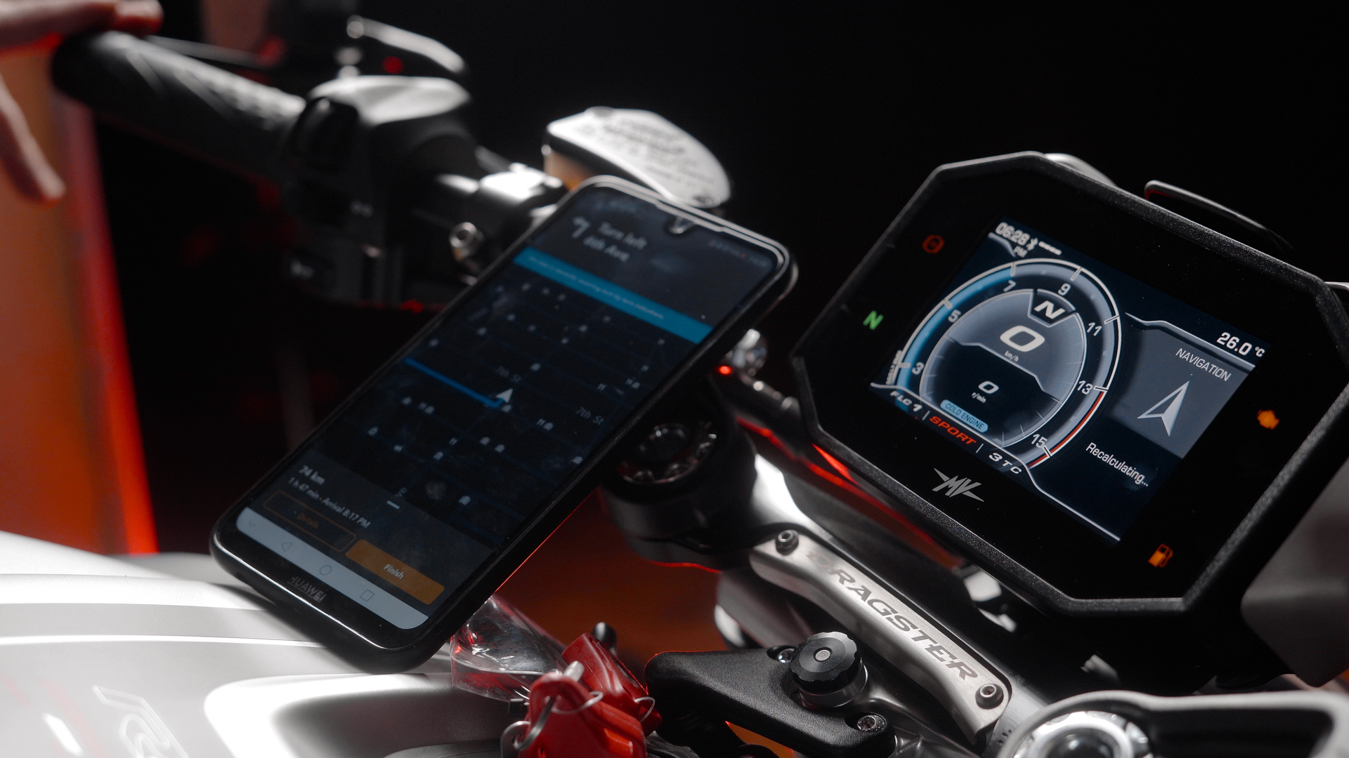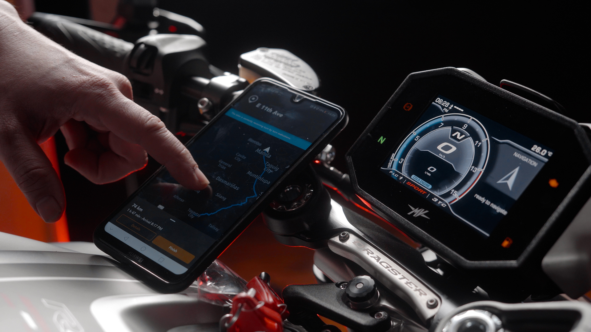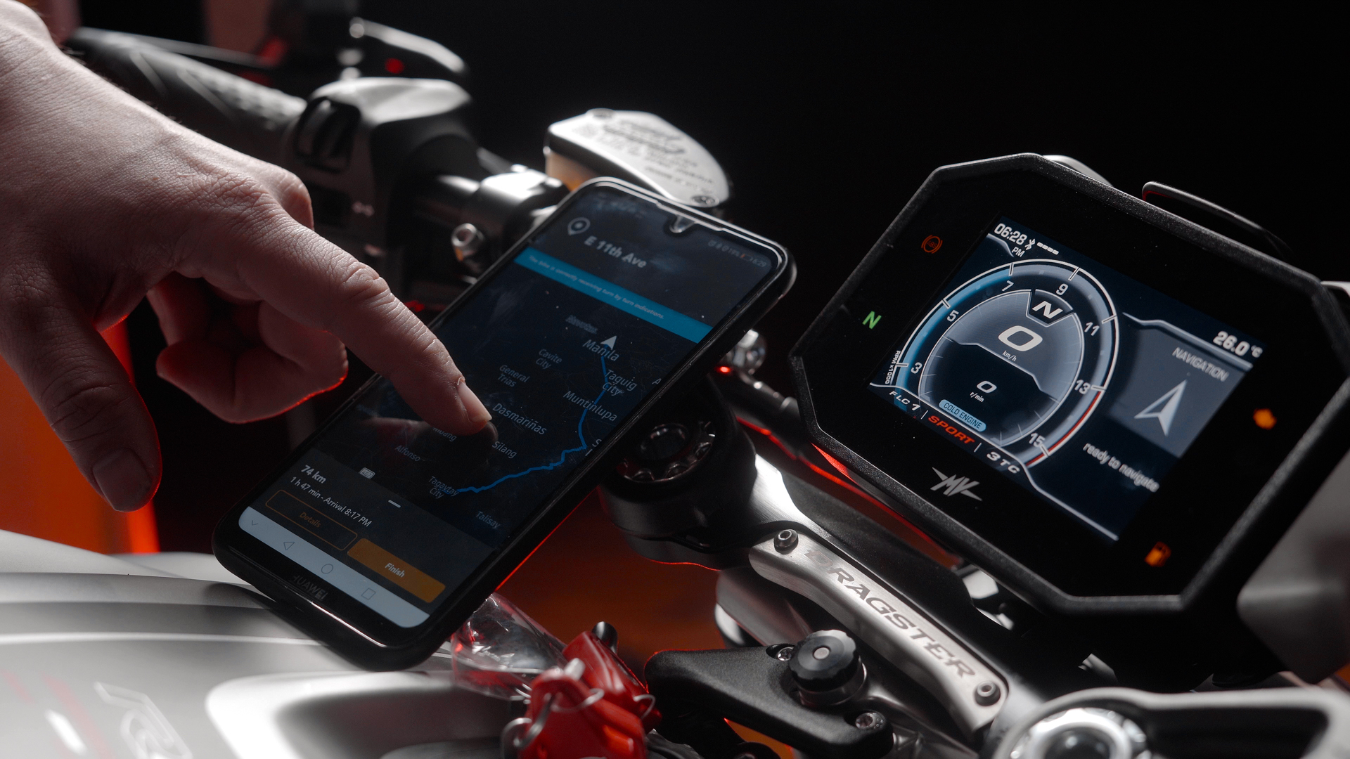 The management of Traction Control and ABS (with cornering function) is now precise and accurate. The FLC “Front Lift Control” is also based on MV Agusta’s philosophy, seeking to avoid compromising the excitement of sports riding while maintaining the high safety standards required of a modern sportbikes. There fore, the current front lift control does not prevent a wheelie, but manages and controls it offering the maximum acceleration and emotion. But it isn’t just “concealed” electronics that have made a generational leap – the ones right under the rider’s nose have also evolved radically. The new, 5.5” TFT dashboard makes a big impact. It is highly comprehensive and capable of communicating with the MV Ride App, which lets you personalise every aspect of the bike directly from your Smartphone, as well as offering the more “classic” features, like recording and sharing routes. The mirroring function also allows the dashboard to be used as a satnav unit with corner by corner directions. Every function can be accessed and navigated quickly via the new joystick control on the left-hand block.