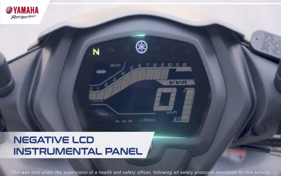 The full LCD multi-function instrument panel displays a speedometer, tachometer, gear indicator, VVA indicator, and other information in a compact arrangement. The angle of the panel itself has also been optimized to suit the riding position for better readability.