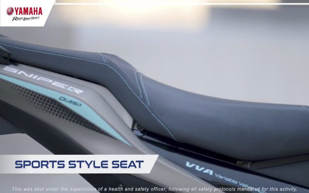 The seat offers a good grip, is slip-resistant and provides excellent ride comfort. The shape of the area that contacts the rider’s inner thighs has been carefully shaped and offers easy leg reach to the ground. The Sniper 155R edition features a special material and stitching.