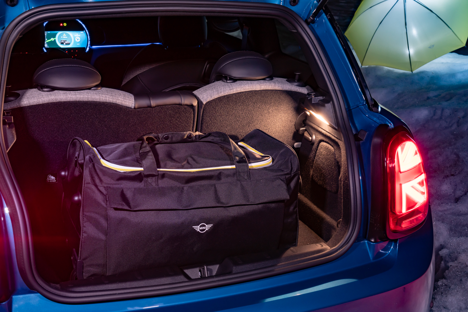 More luggage for longer journeys can be carried comfortably in the MINI Contrast Zipper Soft Luggage (RRP € 160.00). It offers the flexible packing advantages of a travel bag and combines these with the comfort of a trolley thanks to two wheels and an extendible handle.
