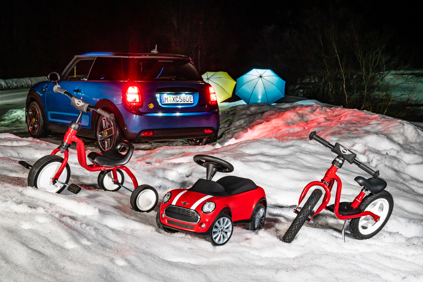 With the MINI Cooper S Pull Back (RRP € 6.90) in 1:36 scale, MINI enthusiasts young and old are ready for any race. The miniature is available in three different colours and the pull-back motor ensures zippy acceleration just like the original. Rolling on your own two feet with the MINI Baby Racer (RRP € 109.00). The smooth-running runabout takes racers aged 18 months and over from the nursery to the playground with quiet rubber tyres and a soft, removable seat cushion. And if energy should run out on the way back, the optional push bar and a strong arm will help get everyone home. The classic Chili Red paintwork with white bonnet stripes provides the unmistakable MINI look in miniature.