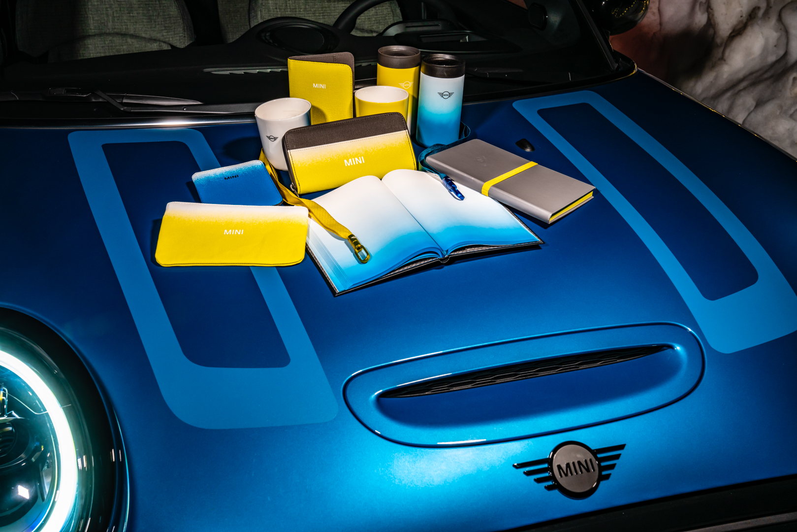 Stay dry in style: The MINI Gradient Walking Stick Umbrella (RRP € 35.00) is a comfortable companion in sunny times thanks to its long stick and protects against showers, storms and constant rain as a windproof, expansive umbrella. To warm you up, the MINI Gradient Travel Mug (RRP € 19.00) keeps your favourite drink at a pleasant temperature. Of course, it fits perfectly in every MINI cup holder and also features an integrated tea bag hook. This is ideally supplemented by the MINI Contrast Tie Water Bottle (RRP € 19.00), which is also available in two colours. Essential details in everyday life are best accompanied by small, stylishly designed accessories: With the MINI Wing Logo Enamel Keyring (RRP € 19.00) or the MINI Signet Lanyard (RRP € 9.50), keys are kept safely together and are always at hand. And to make sure good thoughts don’t just slip by, the MINI Gradient Notebook (RRP € 14.99) with its unique gradient print features elegant blank spaces for notes and an elastic rubber contrasting-colour fastener that also holds the pen securely.