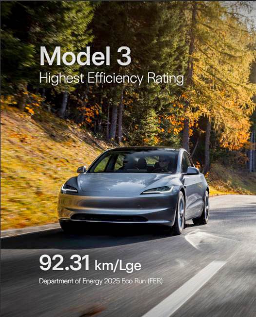 - Model 3 Rear-Wheel Drive: Achieved an outstanding 92.31 km/lge, topping all participating vehicles.