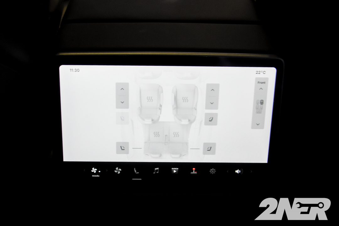 Tesla also made cargo handling effortless. Whether you need to fold down the second or third row, you can do it instantly through the digital cluster on the second‑row monitor or even from the cargo area itself.