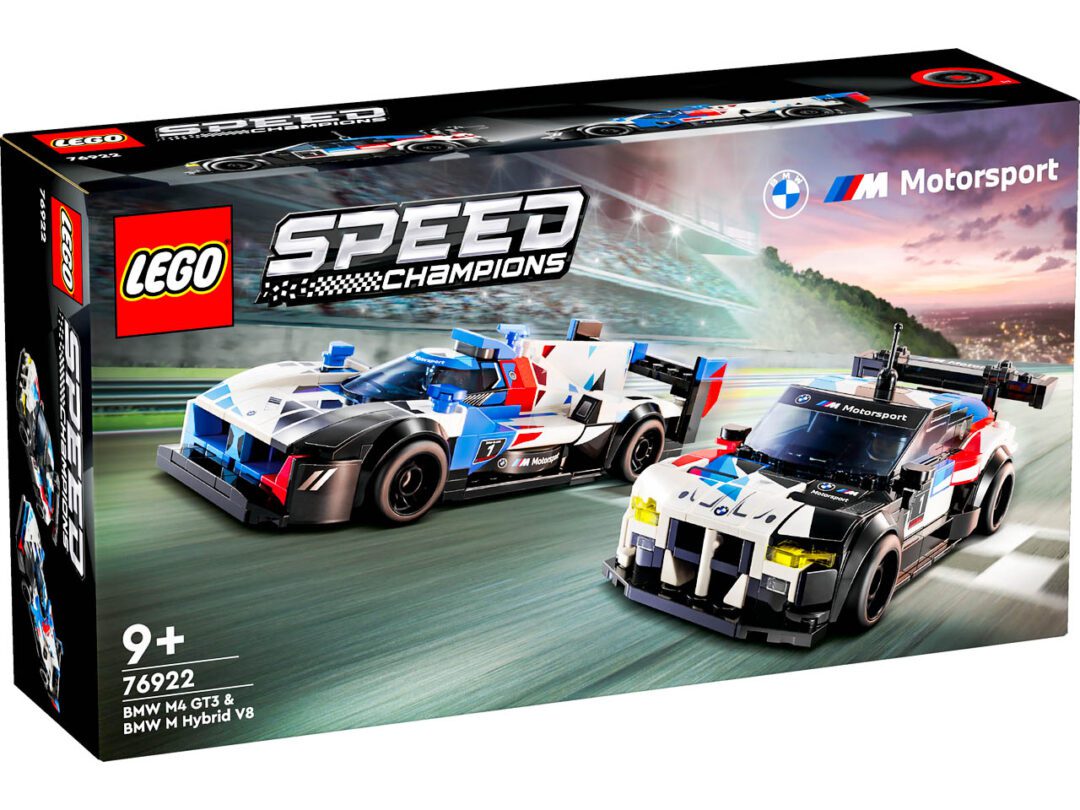 The 76922 LEGO® Speed Champions BMW M4 GT3 & BMW M Hybrid V8 Race Cars features two detailed models as well as two LEGO® minifigure drivers.