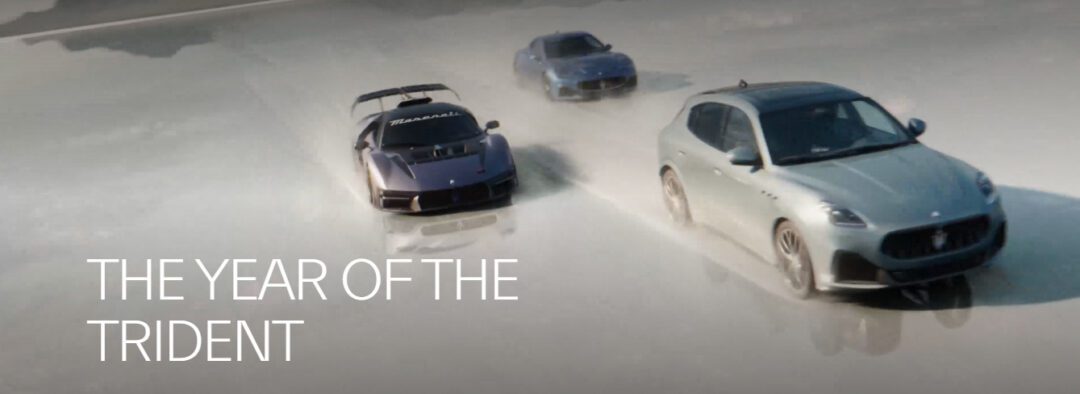 A new film retraces the brand’s history through its most iconic cars: the Tipo 26, Ghibli, and MC12, alongside contemporary models like the GranTurismo Trofeo, Grecale Trofeo, and MCXtrema. In a powerful sequence, the cars leave tracks that form a giant Trident, symbolizing heritage and future united. The campaign even revives the voice of Maria Teresa De Filippis — the first woman to race in Formula 1 with a Maserati 250F — through AI narration, adding emotional depth to the celebration.