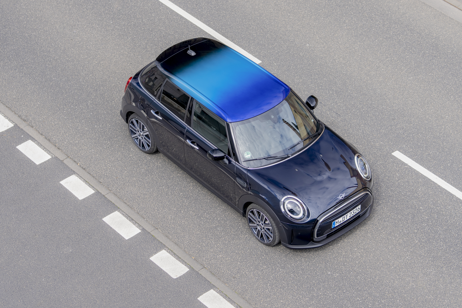 The pioneer for the innovative form of roof design is the MINI Cooper SE (power consumption combined: 17.6 – 15.2 kWh/100 km according to WLTP, 16.9 – 14.9 kWh/100 km according to NEDC). For the first time, the Multitone Roof was offered as part of the MINI Electric Collection for the British premium brand’s all-electric model, which was presented alongside the world premiere of the latest new edition of MINI’s small car models. In the meantime, the Multitone Roof, which is unique worldwide in the mass production of automobiles, is available as an optional extra for both the premium small cars MINI 3-door and MINI 5-door as well as for the MINI Clubman, which is successful in the premium compact segment.