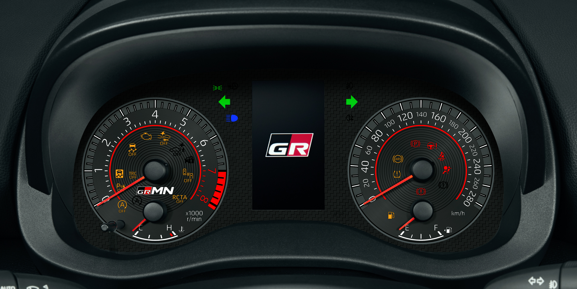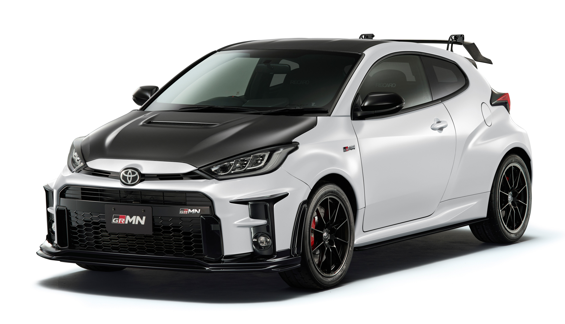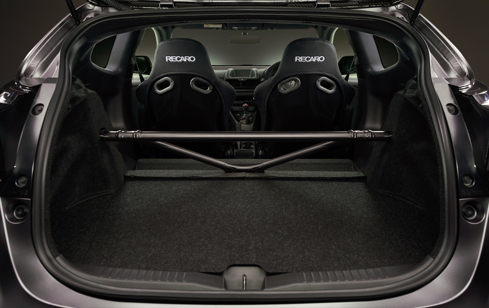 - In addition to the lightweight high-rigidity carbon (twill weave CFRP) used for the hood, roof, and rear spoiler, removing the rear seats to make it a two-person car, has achieved weight reduction of approximately 20 kg compared to the GR Yaris.