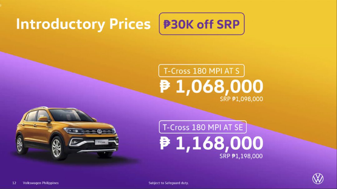 The T-Cross 180 MPI S would be offered at P1.098M, while the 180 MPI SE would be pegged at P1.198 million with an additional discount of P30,000 off the announced SRPs. These introductory prices and discounts will be available for those who will reserve their T-Cross units before the market introduction this May.