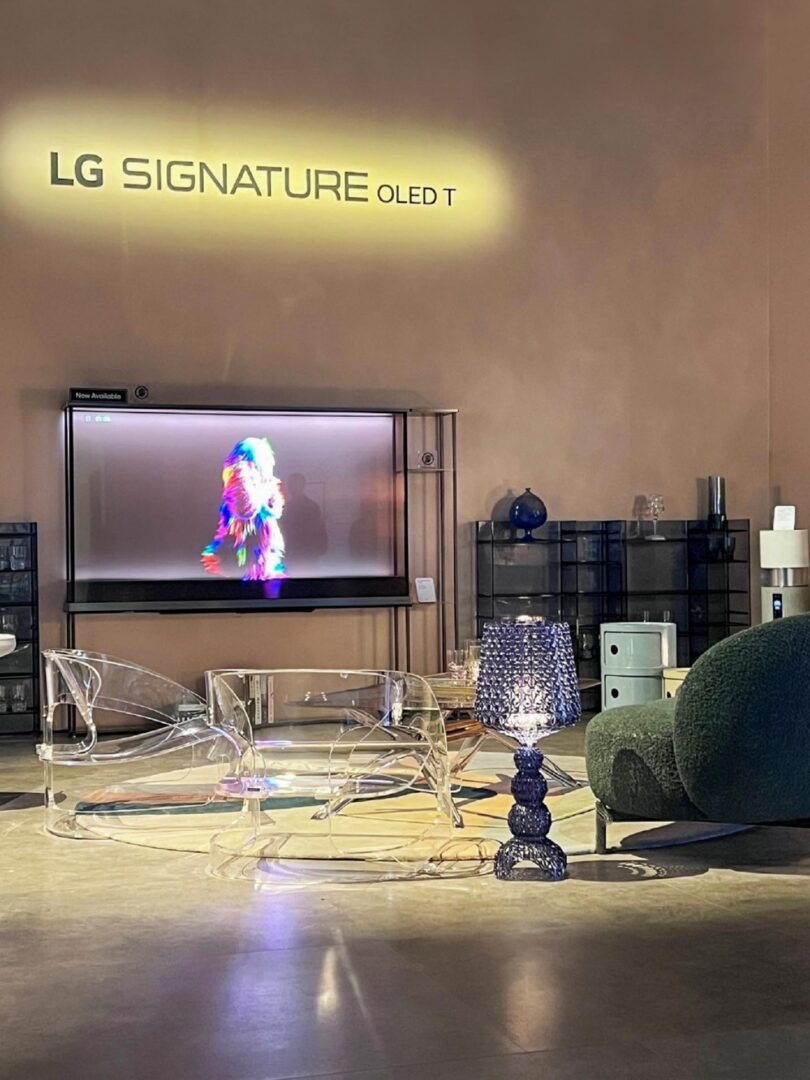 In the Curate & Elevate (Upscale Home Living) zone, LG demonstrated seamless integration of its innovative TVs into high-end home environments. A collaboration with iconic design house Kartell allowed visitors to experience the LG SIGNATURE OLED T, which effortlessly transitions between transparent and opaque modes, offering both a gallery-worthy display and the stunning visual quality of OLED.