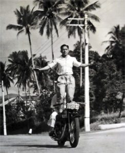 Royal Enfield is not new in South East Asia as well. Royal Enfield dealerships existed in Singapore before and after the Second World War. The brand enjoyed great popularity in the 1950s, with Singapore serving as the distribution hub for the whole South East Asia region. Seen here in 1947 is one very satisfied customer, stunt rider Lan Send Fook, who bought his 350cc Model G from the Singapore distributor. “I have never ridden anything better, the machine is practically vibrationless at high speed. It’s stable and corners well,” he proclaimed. All essential qualities if you got your kicks from riding hands-free at 30mph while standing on the petrol tank!