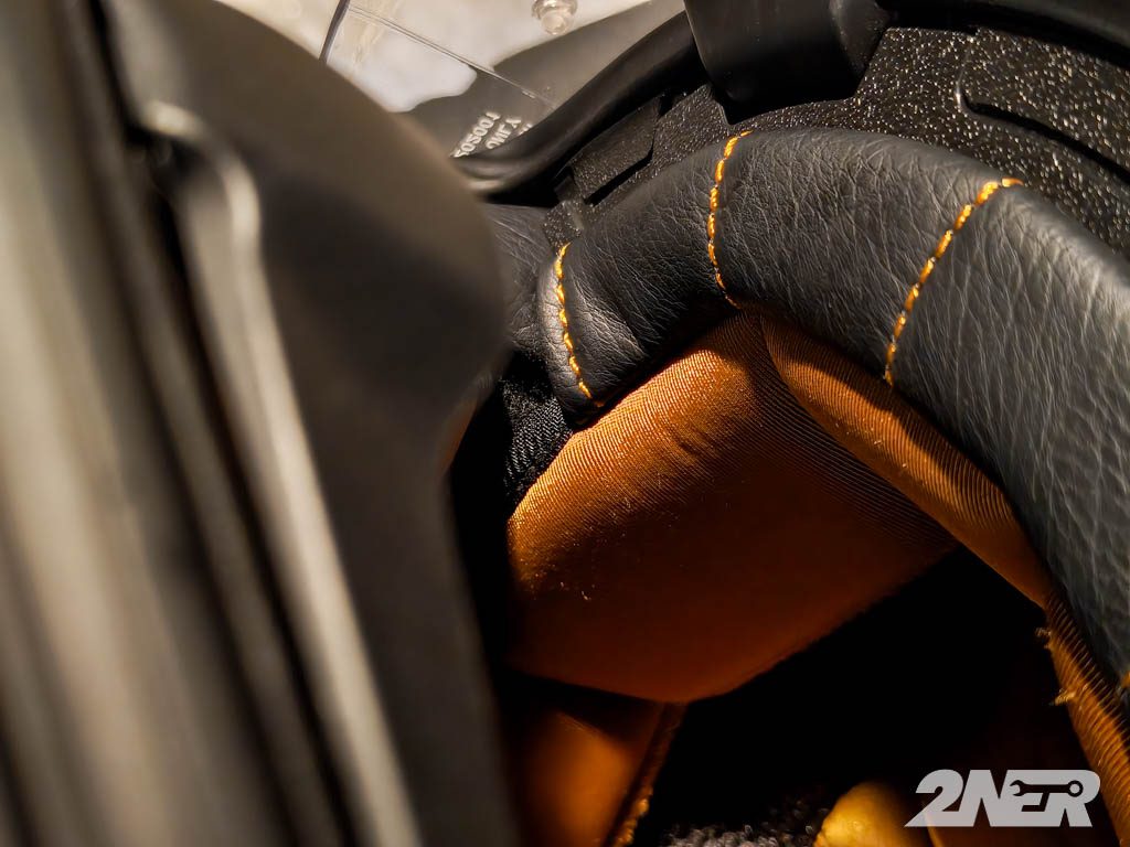 The materials used for the interior are plush, moisture-wicking interior lining, that comes in an earth-tone, hypoallergenic finish to match its elegant look and feel. The chin guard comes as a standard that helps reduce noise. Overall, the interior is outstanding retro quality.
