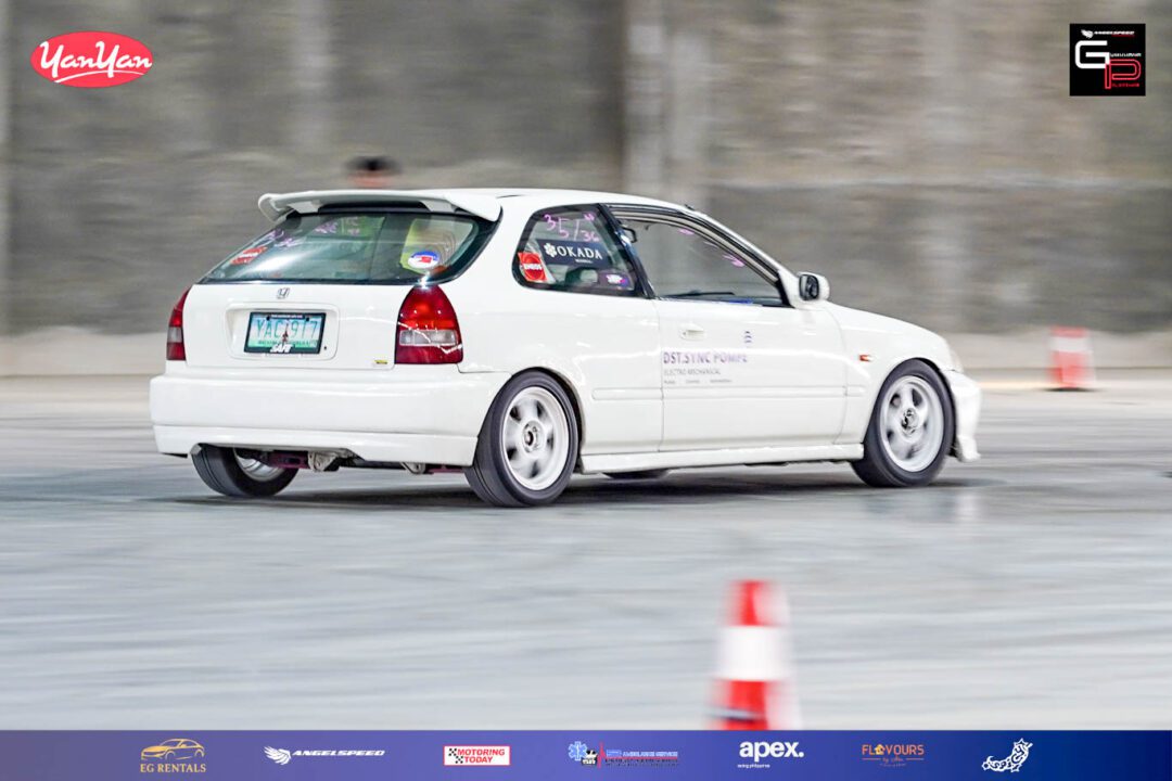 Hot on his heels was autocross legend Richard Sanchez, who secured 2nd with a 43.92-second run in his automatic Toyota Yaris. Close behind was another autocross champion, Rommel Aguilera, who made a strong GP debut with a 45.61-second lap in his orange Honda Civic EG.