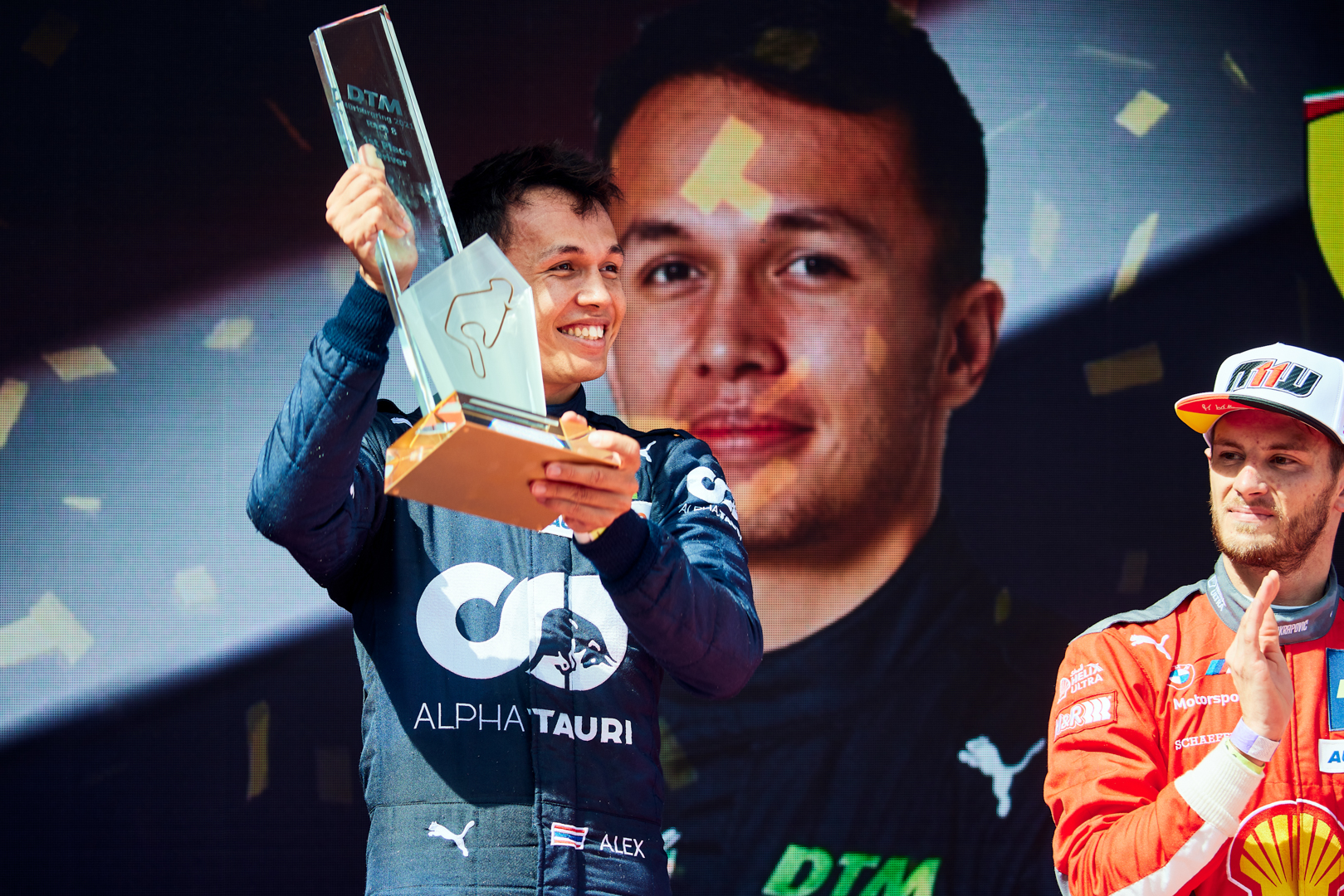 Following a difficult race seven on Saturday, Sunday’s race could not have gone better for Albon as he managed difficult, wet conditions in his #23 Ferrari 488 GT3 Evo 2020 to top qualifying. He remained calm during the race, despite numerous incidents and safety car periods, crossing the line after 38 laps with a lead of 4.6 seconds to record his first DTM series career victory and third 2021 trip to the podium following third-place finishes at Zolder and Monza.