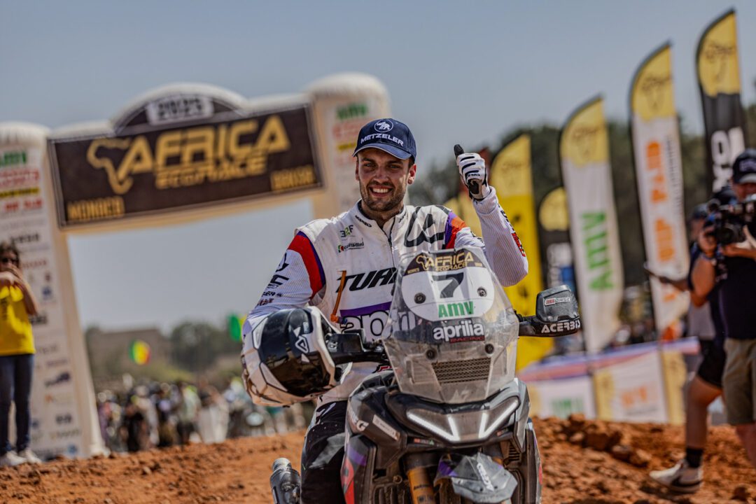 The 2025 edition of theAfrica Eco Race comes to a closewith Jacopo Cerutti and Team Aprilia Tuareg Racing playing the leading role in a thrilling competition which was wide open all the way down to the final timed section.This second consecutive title is the cherry on top of an unforgettable edition whichended with the final parade on the banks of theLac Rose.The sixteenth edition of the Africa Eco Race covered almost 6,000 km, crossing overthe breathtaking landscape of Morocco, Mauritania, and Senegal. It was a gruelling route which put riders andbikesto a difficult test, confirming the Aprilia TuaregRally’s level of excellence.