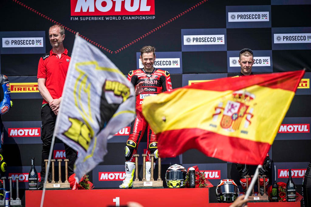 “It was a very difficult race: it was very hot, and my opponents, especially Schroetter and Sofoglu on the MV Agusta, were really tough. That is why I am very happy also because the bike was really strong thanks to the work of the team. Winning is always a satisfaction also because it means that we did better than the others”.
